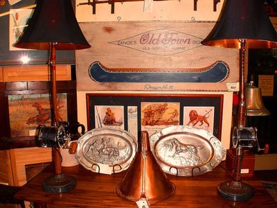 Our inventory includes hand-carved duck decoys, bamboo rods, old reels, collectible fishing lures, custom framed vintage outdoor magazines and calendar prints, lodge furnishings, antler and fish mounts, walnut bookcases, hand painted signs, fantastic blanket chests, pewter and bronze castings, outstanding silver trophies, one-of-a-kind sporting lamps, Southwestern and Indian jewelry, and Authentic farm tables with carefully selected aged woods from old barns or Southern Plantations.